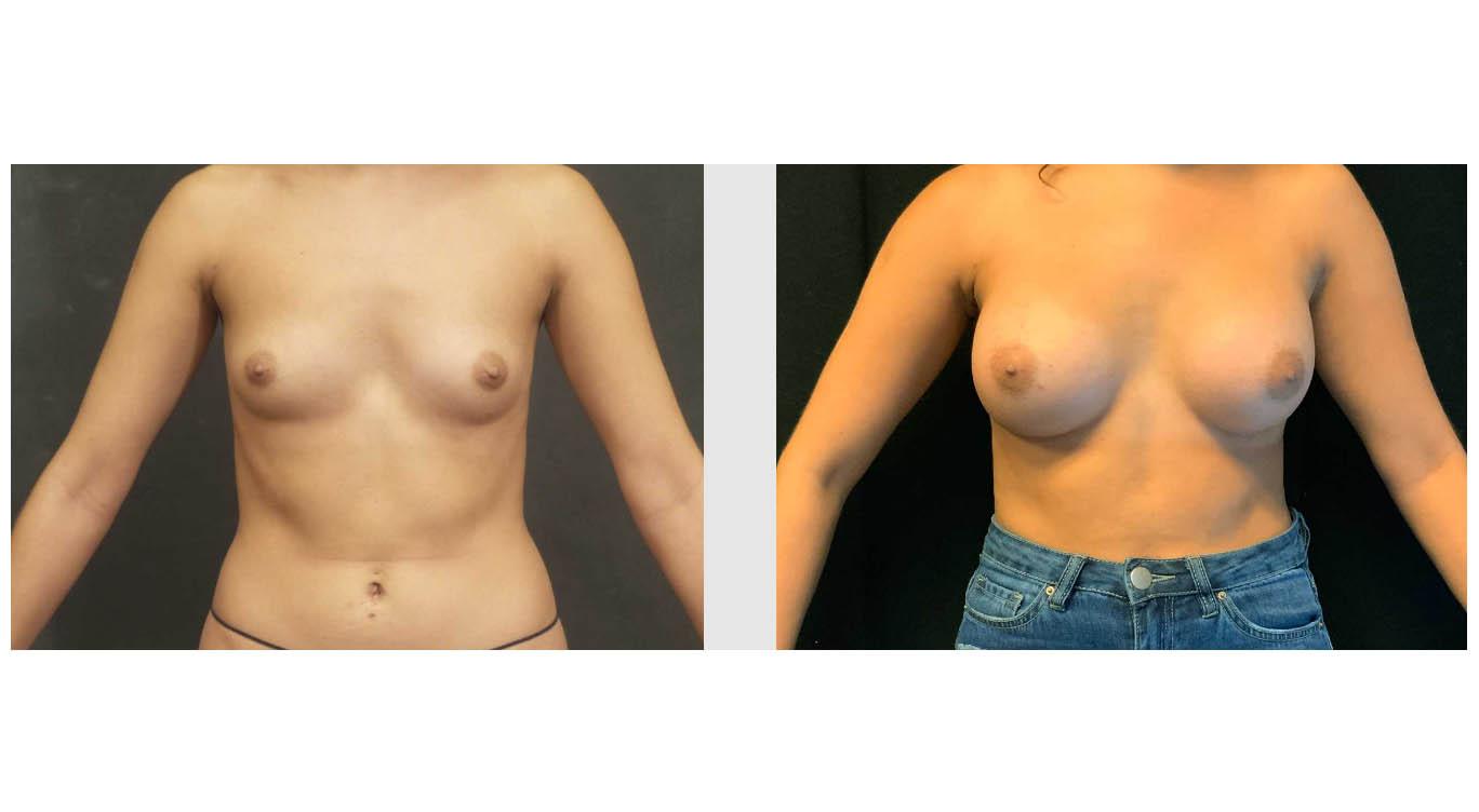 This patient desired larger, fuller breasts. She naturally had little breast tissue and was a wonderful candidate for a breast augmentation surgery. Dr. Jonov placed 325cc silicone implants to augment her breasts. She is beyond pleased with her results and new body contours.