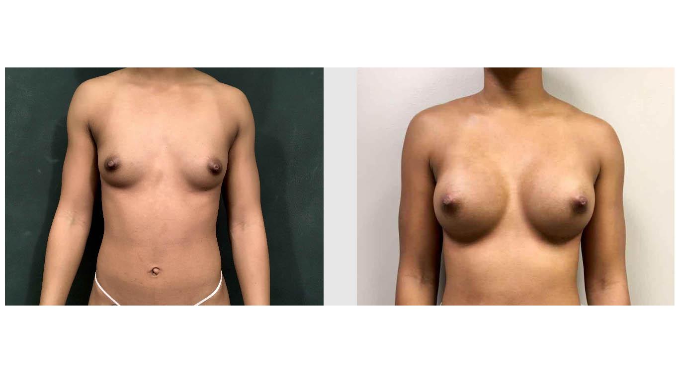 This is a 30-year-old woman who wanted larger, fuller breast. We successfully did a transaxillary submuscular breast augmentation using 375 cc moderate plus silicone implants.