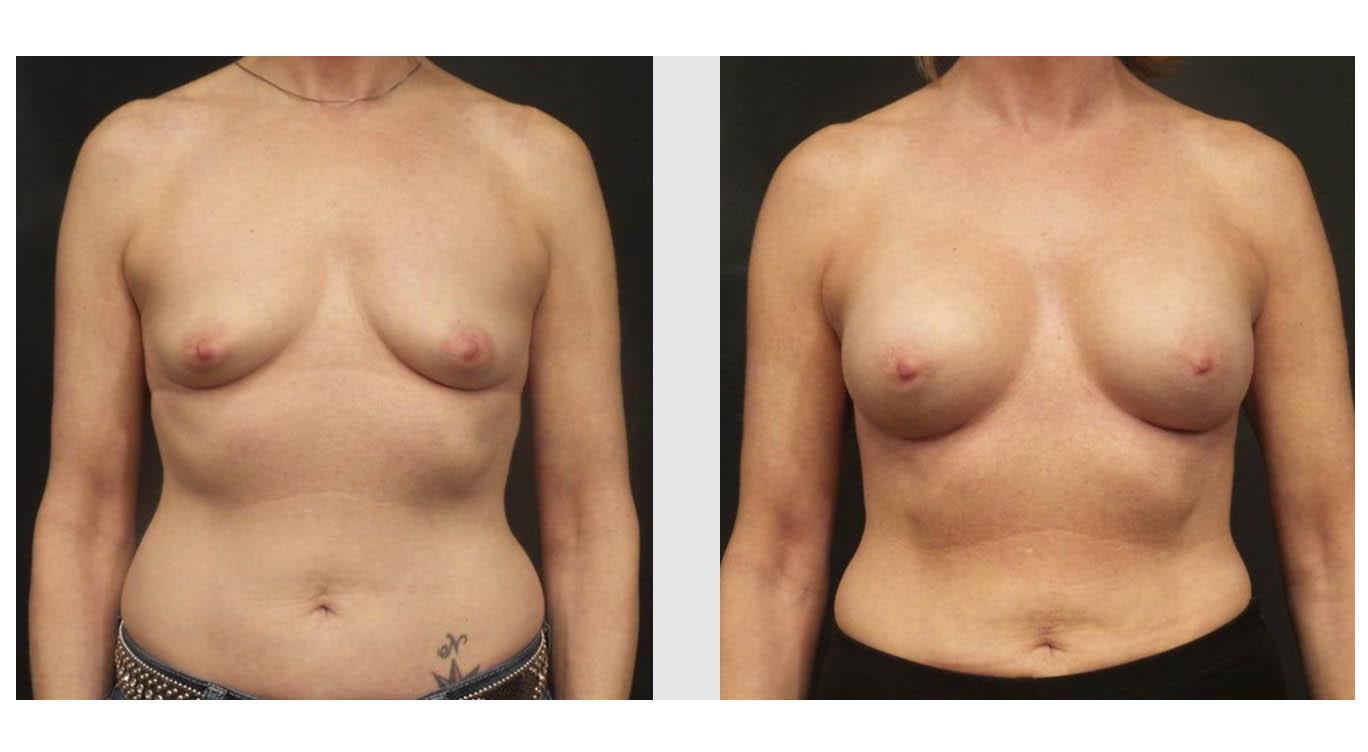 This 53 year old patient wanted fuller, yet still natural looking breasts. To achieve this look, I successfully implanted Anatomical “Gummy Bear” Silicone Implants via the inframammary fold. The implant size is comparable to 350 cc silicone implants. These are her results 6 months post-operative.