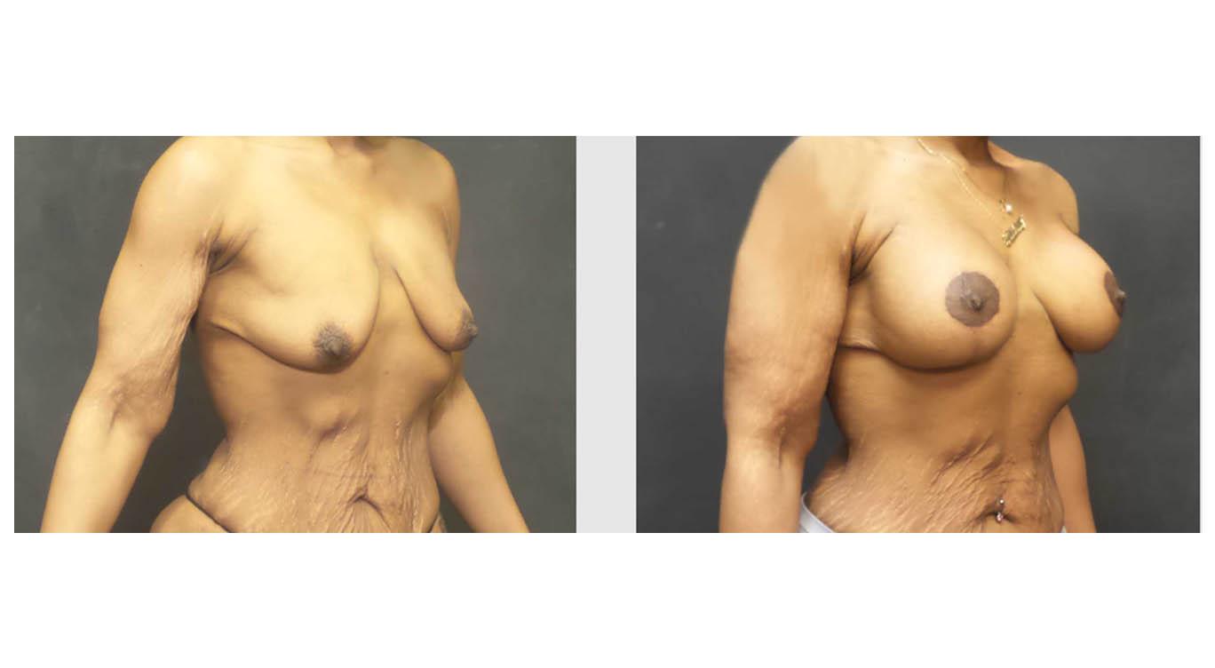 Due to aging and other factors, this patient experience major volume loss and extra skin surrounding her breasts. Not satisfied with their sag and appearance, this patient consulted with Dr. Craig Jonov at Seattle Plastic Surgery. She decided to undergo a breast augmentation with lift surgery where Dr. Jonov placed 400cc High Profile Silicone implants and performed a breast lift.
