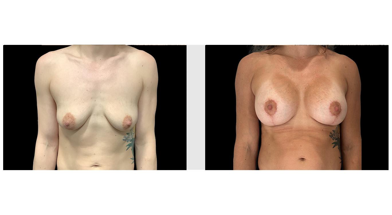 This procedure combines a breast lift (mastopexy) to remove excess skin and elevate the breast for a perkier profile, while simultaneously inserting 390cc Smooth Round Moderate Plus MemoryGel Boost Implants to restore volume and fullness.