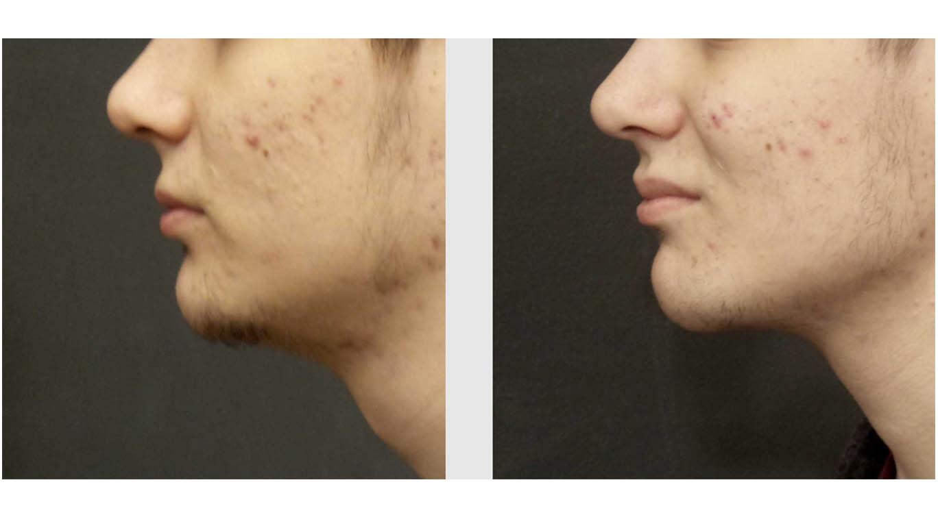 This 19-year-old patient desired a sharper jawline and more prominent chin. Dr. Jonov inserted a chin implant to five him more definition and stronger facial appearance.