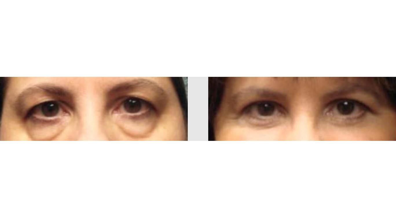 Women seeking facial rejuvenation sometimes address their eyes first as it is an area where certain features can make one look tired and weary. This 46-year-old patient came to Seattle cosmetic surgeon, Dr. Craig Jonov, to remove the loose skin that was hanging from her upper eyelid, as well correct the dark circles under her eyes. It was the bags and circles under the eyes, in particular, that made her look exhausted even after receiving a full night of sleep. Dr. Jonov performed blepharoplasty (known as eyelid surgery or an eyelid tuck) to remove the skin on the upper eyelid. Lower eyelid surgery using an incision along the lash line allowed Dr. Jonov to remove excess fatty tissue and pull up the remaining skin so that a softer, smoother look could be achieved. Our patient now appears “awakened” and more alert. She is happy with her results and looks and feels rejuvenated!