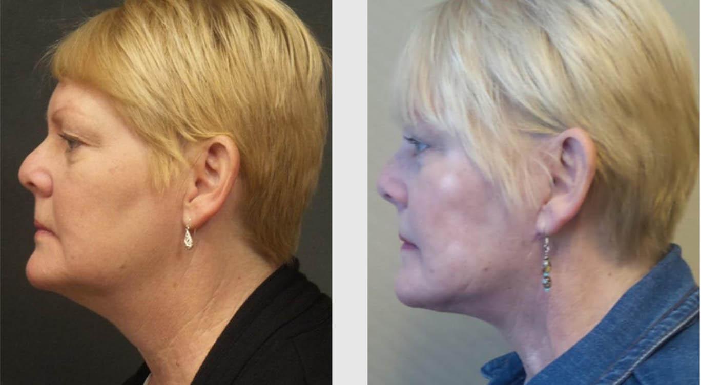 This 56 year old patient came in wanting a refreshed look, not too overdone and a more defined neck area. To achieve this, I successfully performed a SwiftLift–a particular face lift technique, a plastysmaplasty to provide a more defined neck area and a quad blepharoplasty, addressing both the upper and lower eyelids. These are her results 7 months post-operative.