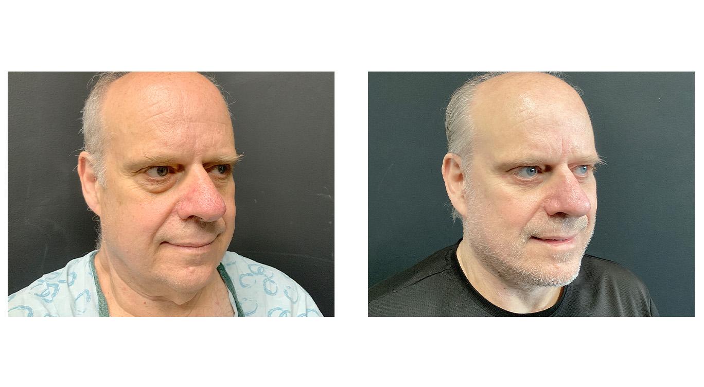 This 68 year old patient wanted to rejuvenate his face without looking overdone. In order to achieve natural looking results the procedures he had done are as follows; A Lower Face & Neck Lift w/ Platysmaplasty w/ Bilateral Lower Blepharoplasty w/ Canthoplasty & CO2 Laser Resurfacing of Nose.