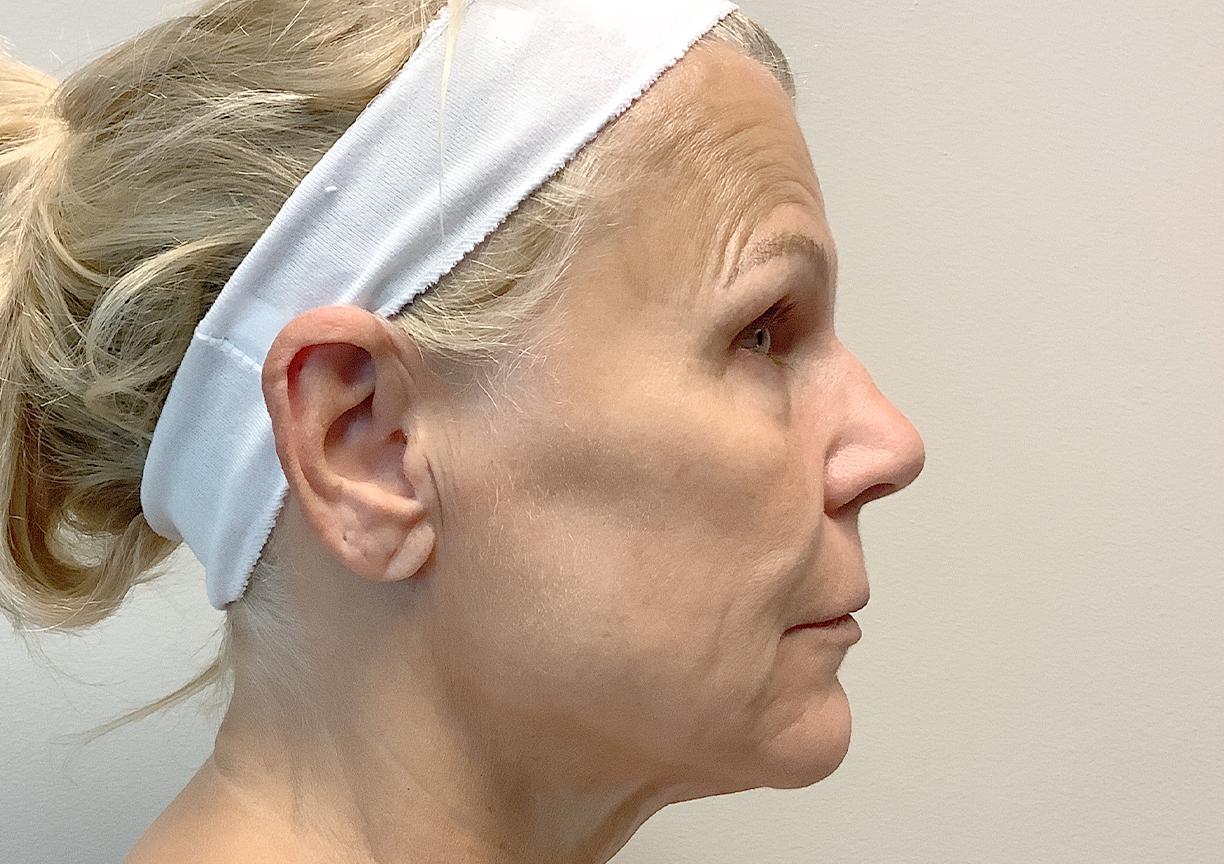 This patient came to Dr. Santos for facial rejuvenation. Dr. Santos performed a mini facelift with platysmaplasty. The patient looks years younger after her surgery.