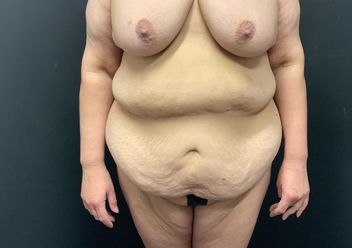 This patient underwent a fleur-de-lis tummy tuck with diastasis recti repair and liposuction of the waist. The patient has seen amazing results.