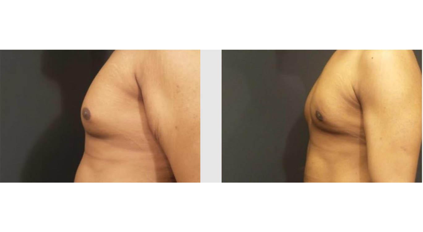 Patient is unhappy with the fullness appearance of his breasts making him self-conscious about wearing T-shirts and with without a top. Patient underwent gynecomastia procedure utilizing smartlipo and glandular excision to achieve a more masculine look.