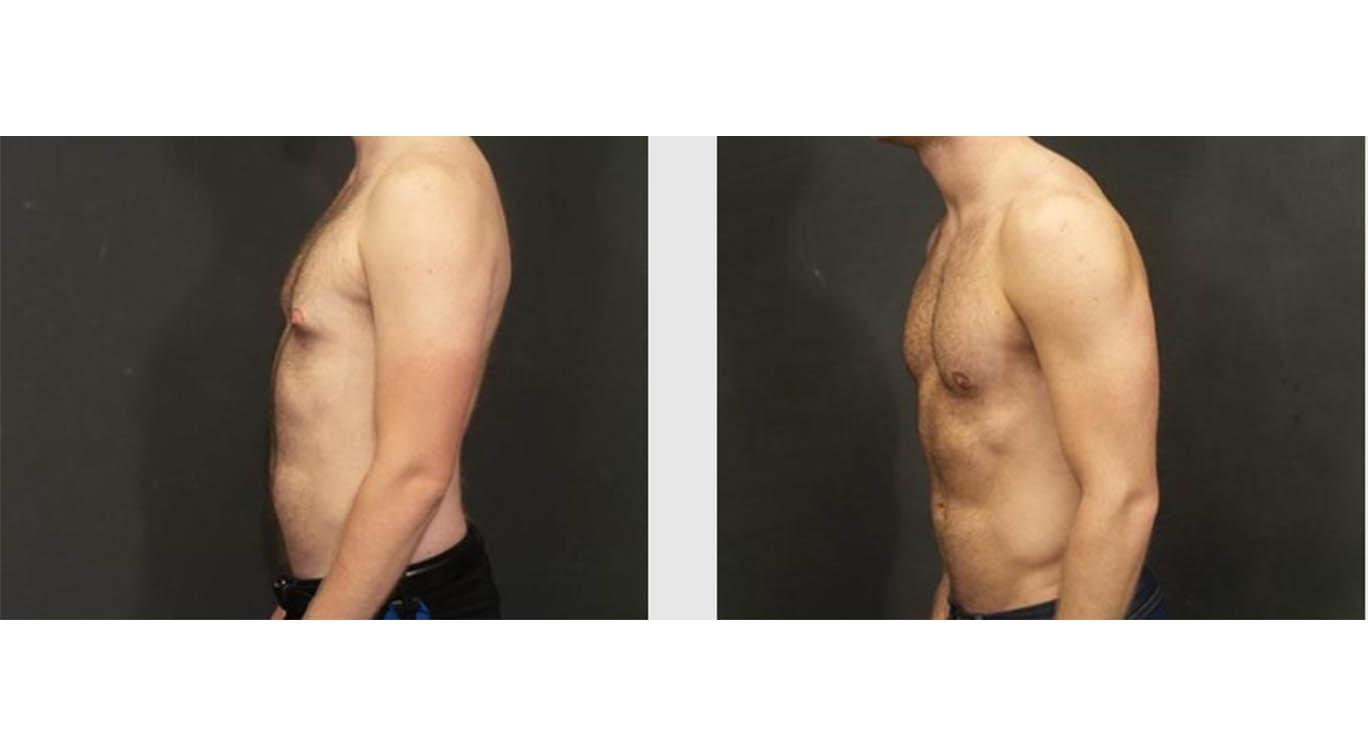 This is a 25 year old male who came to me as no amount of exercise was addressing the excess tissue in his chest area. I performed an excision of the excess glandular tissue and 1 year post-operative, his results only continue to get better.