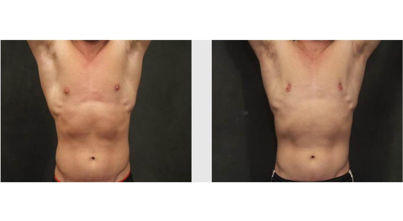 This 30 year old patient was concerned about the appearance of his nipples, desiring a flatter surface. I successfully performed a gynecomcastia procedure, excising the glandular tissue resulting in a flatter, more masculine chest. These are his results 11 months post-operative.