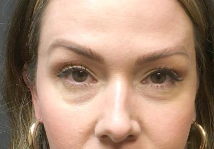 This patient wanted to address her under eyes to fill in hollowness and darkness. Her injector recommended dermal fillers injections to brighten up her eyes. Using one syringe of Restylane L filler and injecting it under the eyes, the patient loves her results and feels she looks much more awake and approachable.