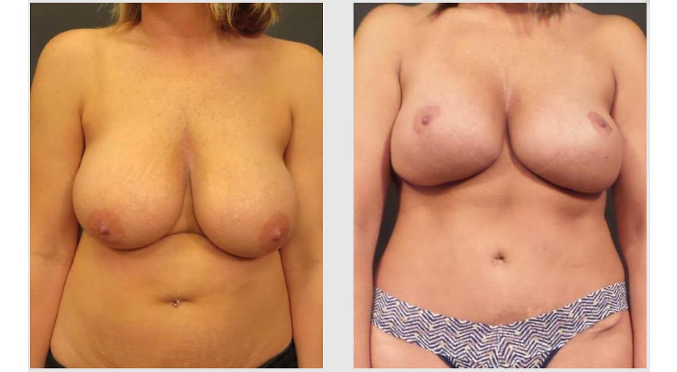 Patient was unhappy with the appearance of her abdomen and breast after childbirth. The patient underwent successful abdominoplasty and liposuction to achieve flat and smooth appearance of her tummy. For her breasts, the previously placed implants were removed. A lift and re-augmentation was completed to achieve a more shapely and symmetrical body.