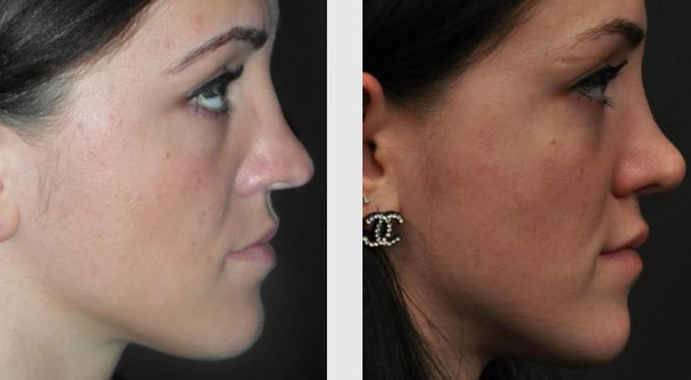 Rhinoplasty is a cosmetic nose surgery that reshapes the nose into a more desirable shape. This 21-year-old female patient felt her nose was too wide and did not have an aesthetically appealing shape or contour. Seattle cosmetic surgeon, Dr. Craig Jonov, used the open rhinoplasty approach to reshape the bone and cartilage so that the result was a narrower, softer appearing nose. Open rhinoplasty is a common approach for cosmetic surgeons and allows them to gain greater access into the nose to sculpt and manipulate the internal structures until the desired result has been attained. Our patient loves her results and the photos show a striking, yet subtle difference, which is the result she was going for.