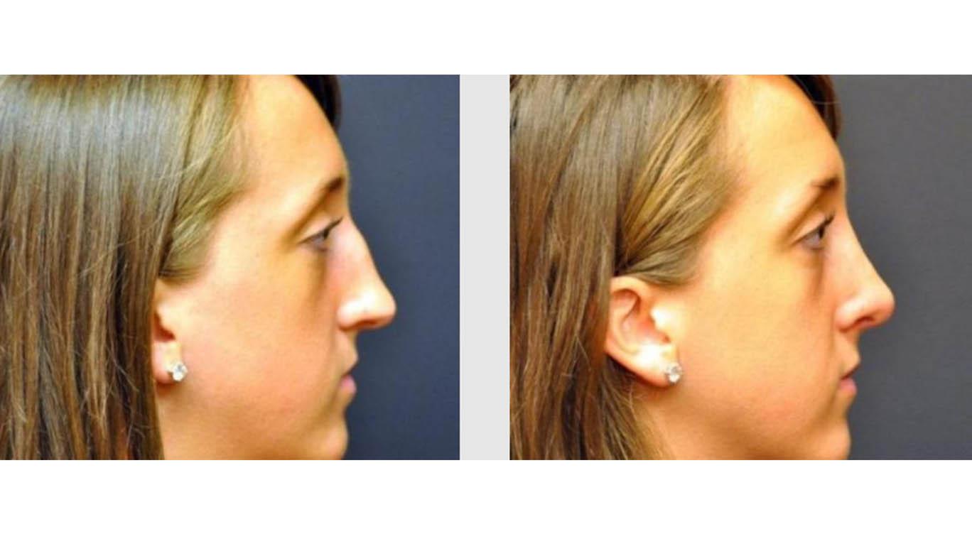 Rhinoplasty surgery was performed in Seattle to smooth and contour this patient’s nose. The “before” photos show , that her nose was crooked, hooked, had a bulbous tip, and looked “long” on her face. The “after” photos show how these features were corrected.