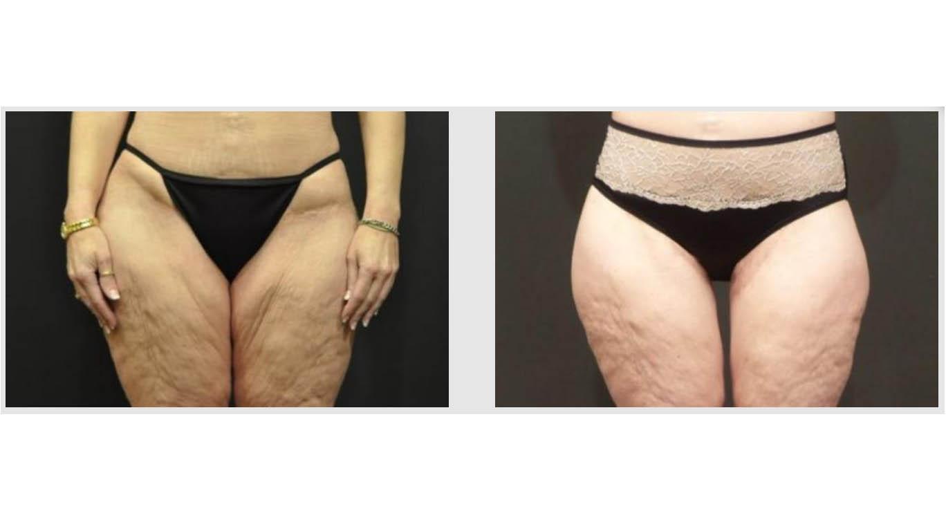 Patient was unhappy with the appearance of the lower aspect of her body with changes associated with excessive weight loss. Patient underwent thigh lift and body lift to create approved body aesthetics in her lower body.