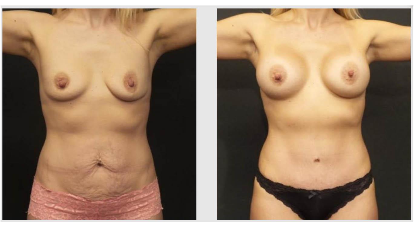After 4 kids, this 30 year old patient was looking to restore volume in her breasts and address her tummy area. I successfully implanted 375 cc HP Silicone implants through the transaxillary (underarm) as well as performed a tummy tuck. These are her results 7 months post-operative.