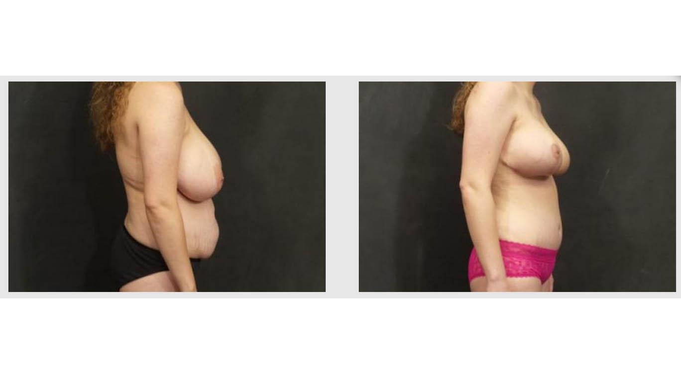 This is a 30 year old woman whose natural breasts were overbearing on her petite frame. She also wanted to address her tummy area after having children. I successfully completed a breast lift and tummy tuck with muscle repair for this patient, with added liposuction of the flanks for contouring.